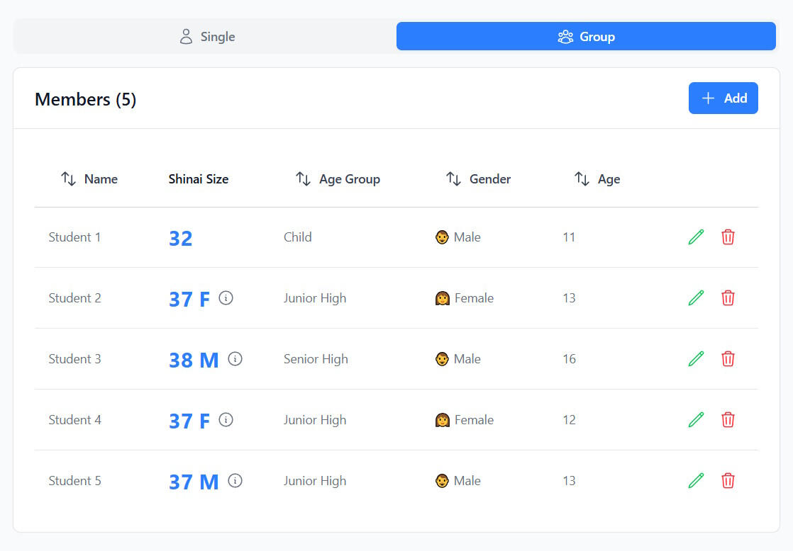 Anyone who needs to quickly check what type of shinai they should be playing with can do so using the Shinai Calculator.If you are running a club with multiple youth members, the calculator really shines by helping you track the shinai size for your students. In addition, it will notify you when a student needs to change to a longer model.The calculator shinai requirements use the latest taikai rules as defined by the All Japan Kendo Federation.